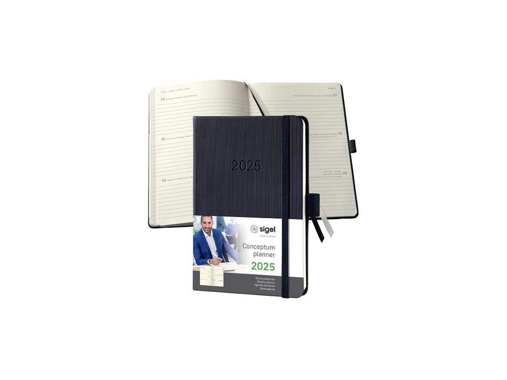 Diár, A6, týždenný, 2025, tvrdá obálka, SIGEL "Conceptum", čierny