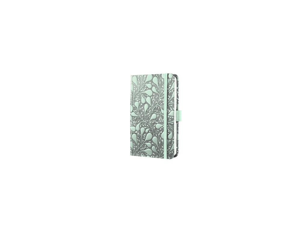 -s označovacou páskou -zapínanie na gumičku -na boku držiak na pero -vnútorná archivačná priehradka a držiak na vizitky -s tabuľkou veľkostí -80 g/m2 papiera -12 listov na poznámky, ktoré sa dajú ľahko vytrhnúť vďaka perforácii -rozmery: 95x150x16 mm -jazyk: DE/ENG/FR/NL