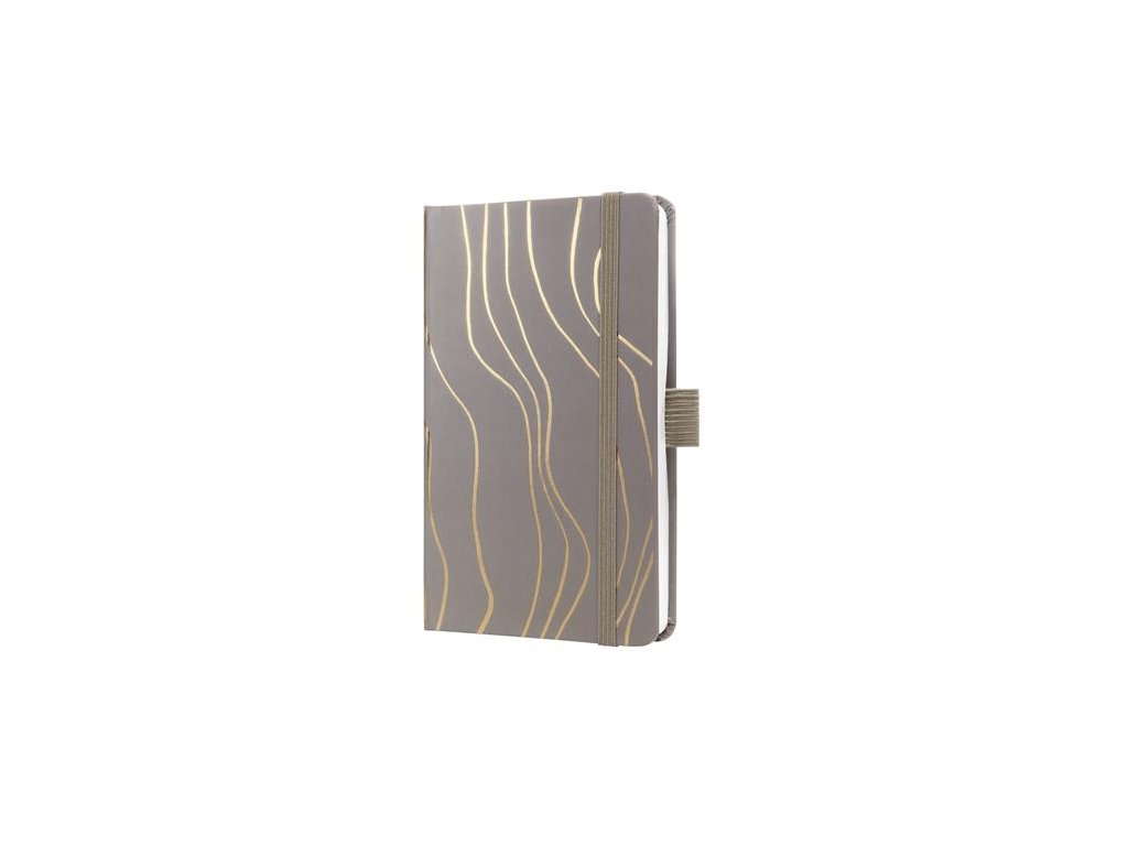 -s označovacou páskou -zapínanie na gumičku -na boku držiak na pero -vnútorná archivačná priehradka a držiak na vizitky -s tabuľkou veľkostí -80 g/m2 papiera -12 listov na poznámky, ktoré sa dajú ľahko vytrhnúť vďaka perforácii -rozmery: 95x150x16 mm -jazyk: DE/ENG/FR/NL