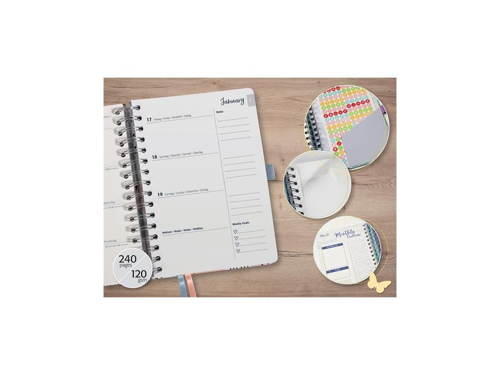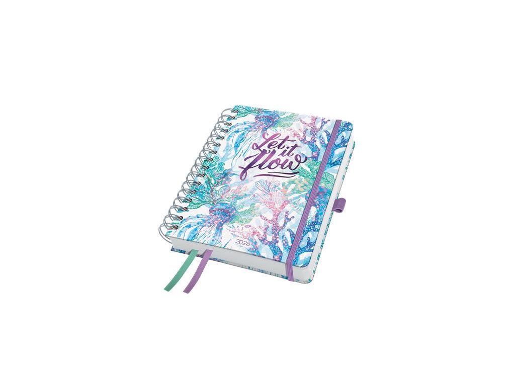 Diár, špirálový, A5, týždenný, 2025, tvrdá obálka, SIGEL "Jolie", Let it flow