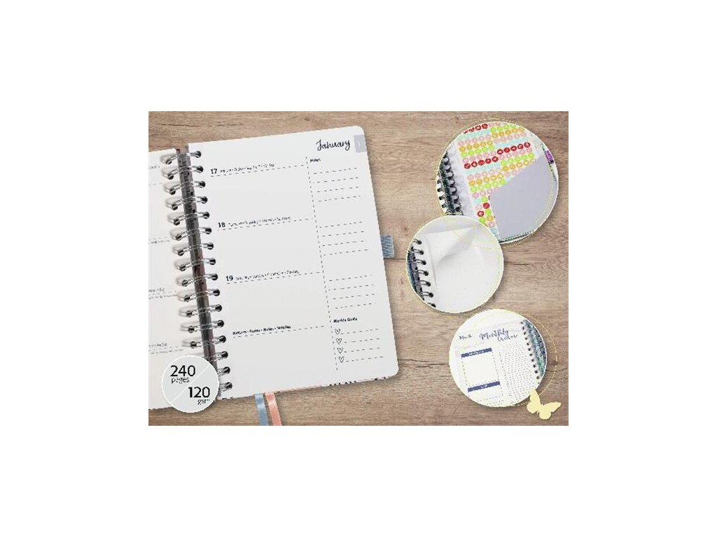 Diár, špirálový, A5, týždenný, 2026, tvrdá obálka, SIGEL "Jolie", Let it flow