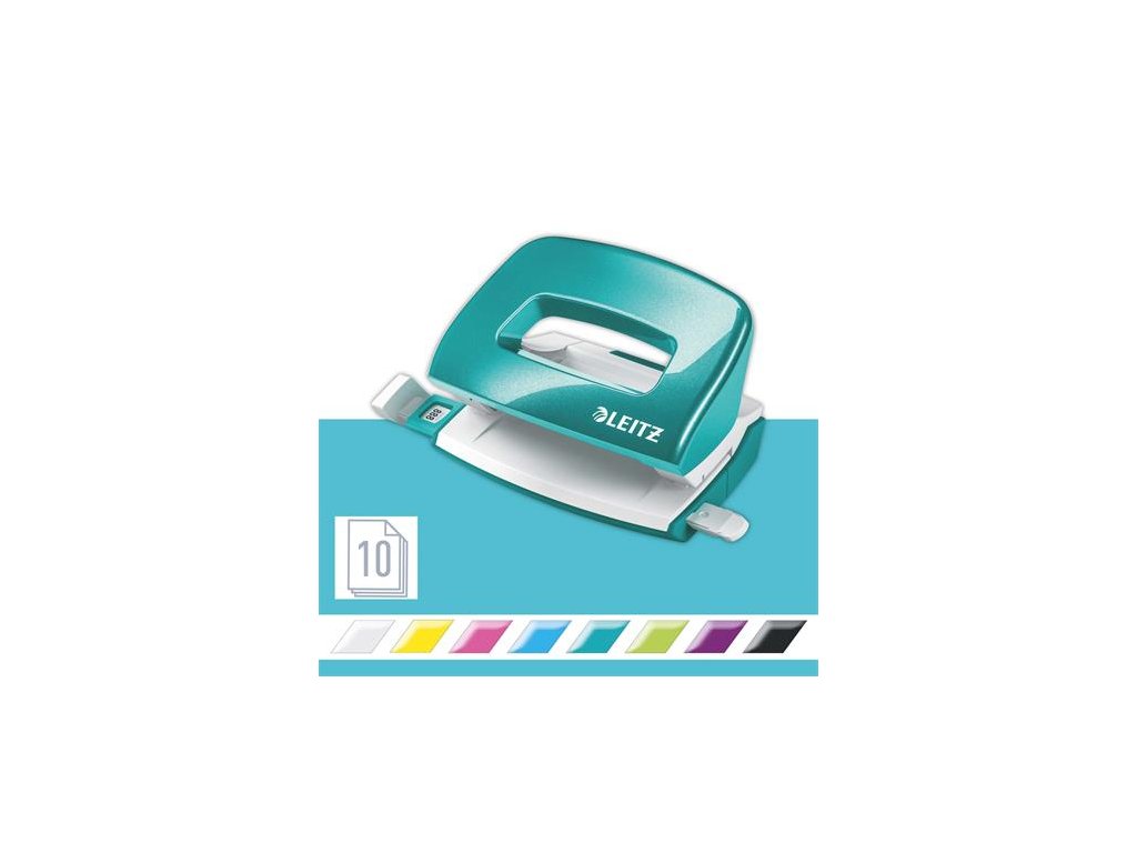 Dierovačka, 10 listov, kovová, mini, LEITZ "Nexxt Wow", ladovo modrá