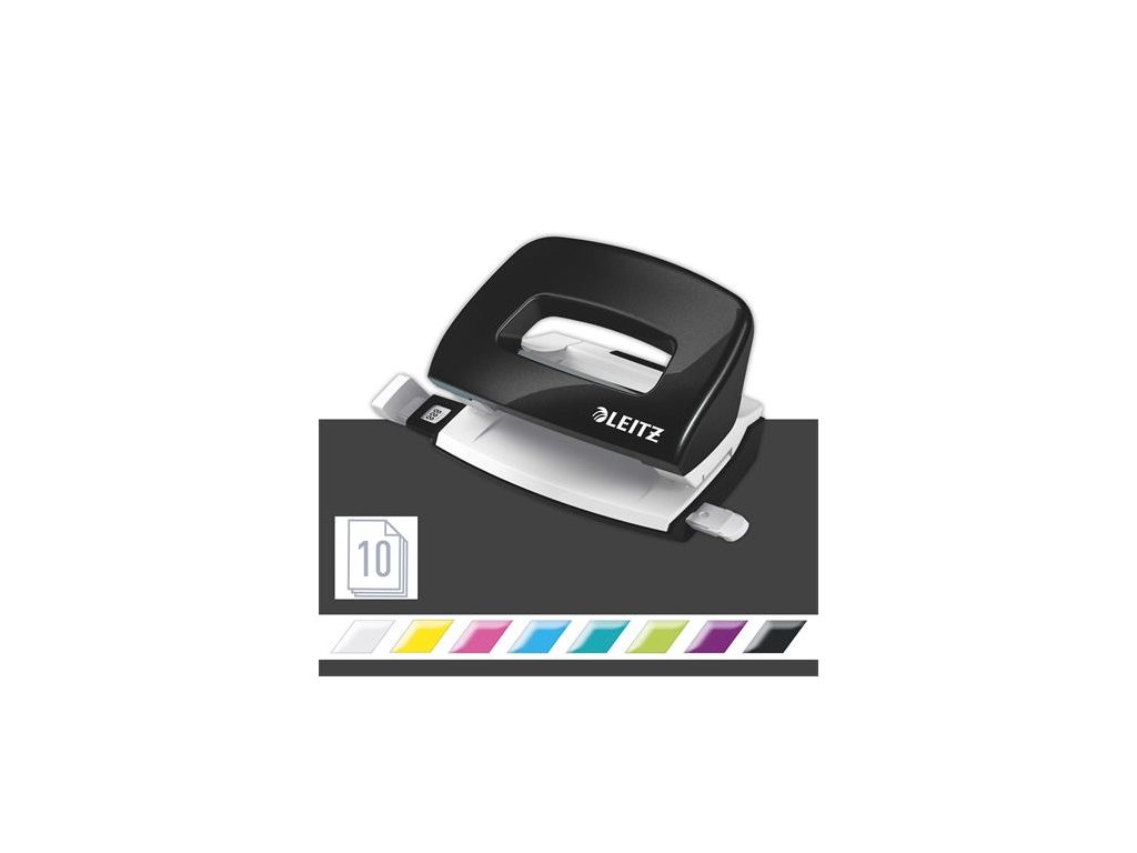 Dierovačka, dvojdierová, 10 listov, kovová, mini, LEITZ "Nexxt Wow", čierna
