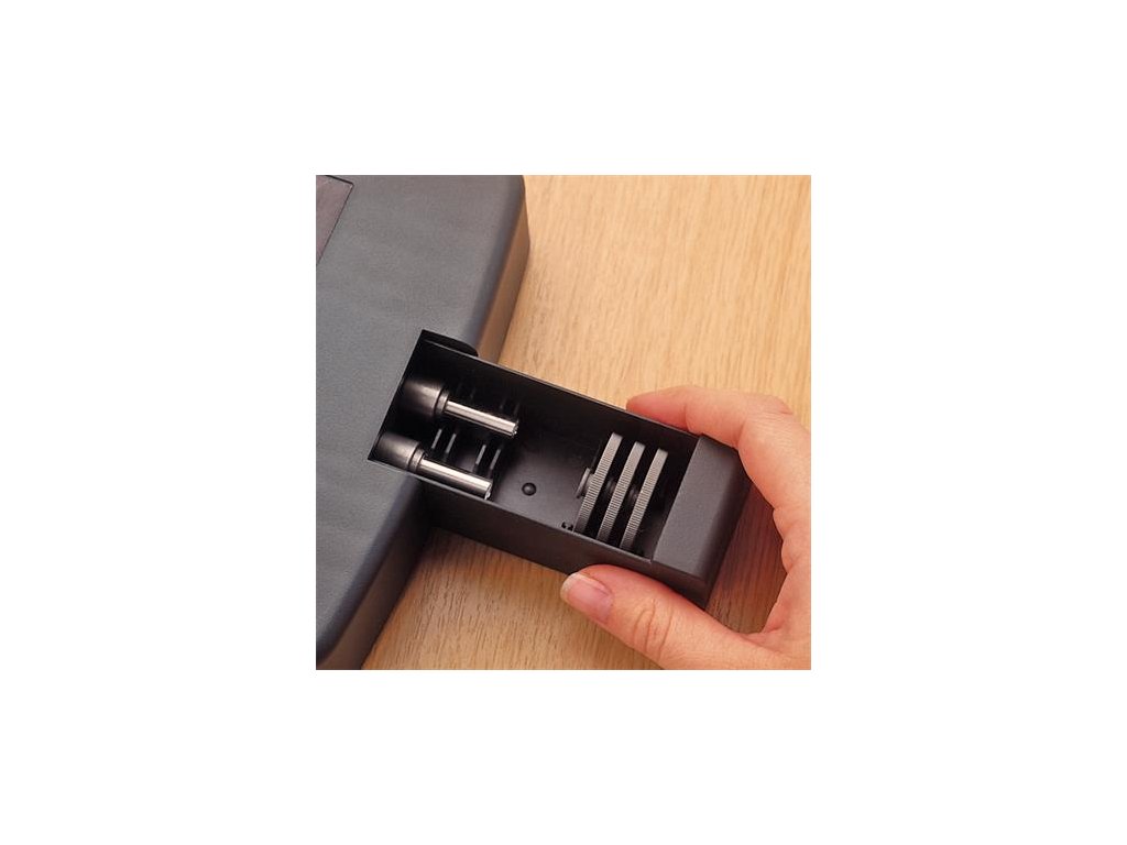 - stolová, veľkokapacitná dierovačka - plastový kryt, kovová konštrukcia - rukoväť a spodný kryt z recyklovaného plastu - odolné, presné dierovacie nože - životnosť čepele: 25 000 dierovaní - ľahko vyprázdniteľný kôš na konfety - označiteľný štítok - výr. číslo dierovacích nôžov: 0281 (2 ks / balenie) - výr. číslo dierovacej dosky: 0282 (4 ks / balenie) 1294 (6 ks / balenie) - priemer otvoru: 6 mm - rozstup otvorov: 80 mm - 240 mm (pre 2 otvory: 80 mm, pre 4 otvory: 80 mm a 240 mm) - jednoduché dierovanie: nie - uzamykací mechanizmus: nie - rozmer: 322 mm × 340 mm × 151 mm (pri stlačení) 410 mm - záruka: 15 rokov Značka: RAPESCO Výrobca: Rapesco-Tacwise BV Adresa: Kraijenhoffstraat, 137A, 1018RG Amsterdam, Netherlands Web: www.rapesco.com Email: support@rapesco-tacwise.nlDodatočné parametre