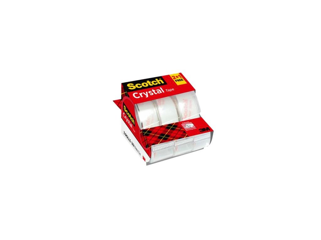 Dispenzor na lepiacu pásku, manuálny, 19 mm x 7,5 m, 3M SCOTCH "Crystal", 2+1 akcia