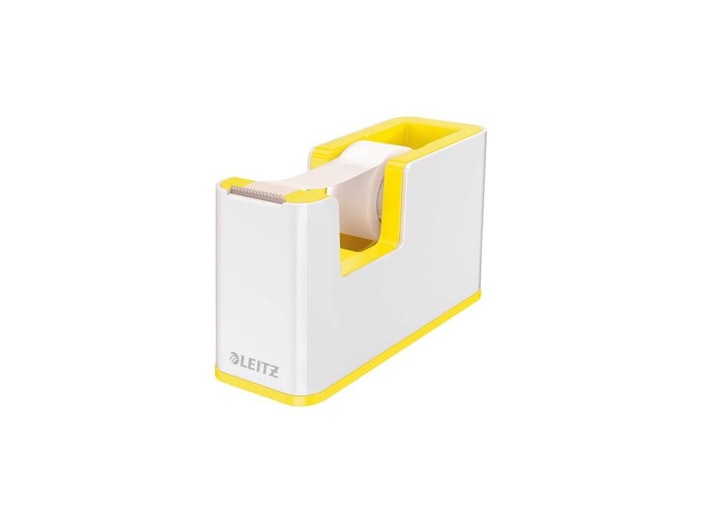 Dispenzor na lepiacu pásku, stolový, naplnený, LEITZ "Wow", biela-žltá