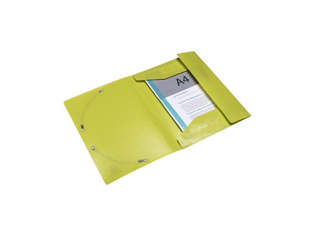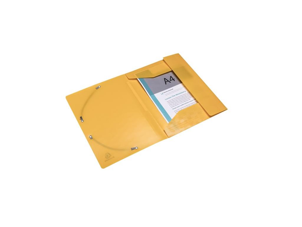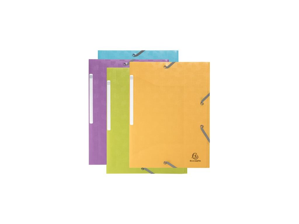 Prémiová doska s gumičkou na dlhodobé použitie! -ideálna voľba na používanie v škole, doma alebo v menšej kancelárii-určená na uloženie dokumentov formátu A4 -0,5 mm PP PP materiál -uzatváranie pomocou gumičky umiestnenej v rohoch -3 vnútorné chlopne pre bezpečné uloženie dokumentov -kapacita: približne 250 listov (80 g/m2) -chrbtový štítok pre jednoduchú identifikáciu obsahu -mix farieb, farba sa nedá vybrať (cyánová, fialová, lime, mango) -vyrobená z materiálu s certifikátom Blu AngelDodatočné parametre
