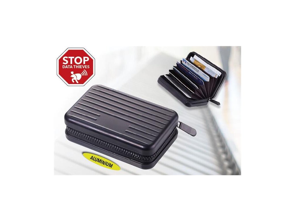 Uchovávajte svoje bankové karty v štýlovom puzdre s pevným obalom a dizajnom kufra. -rozmery: 70 x 105 x 30 mm -zapínanie na zips -materiál: hliník a polyester -RFID ochrana -9 priehradiek -kapacita: 20 karietZnačka: TROIKA