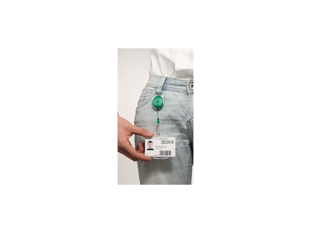 Držiak na identifikačné karty, výsuvný, s karabínou, DURABLE "STYLE", zelená