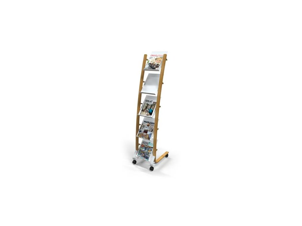 Držiak na katalógy, mobilný, 5 priehradiek, ALBA, drevo/biela