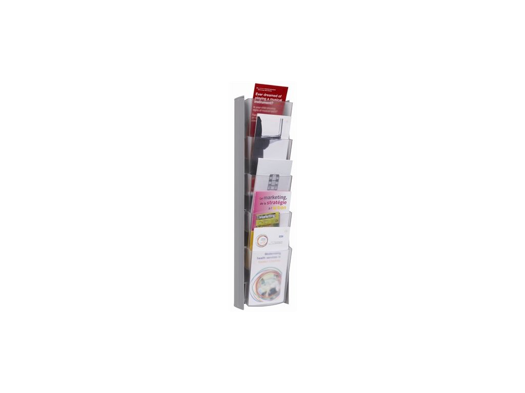 Držiak na katalógy, nástenný, LA4, 5 priečinkov, ALBA, strieborná