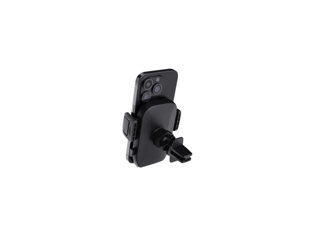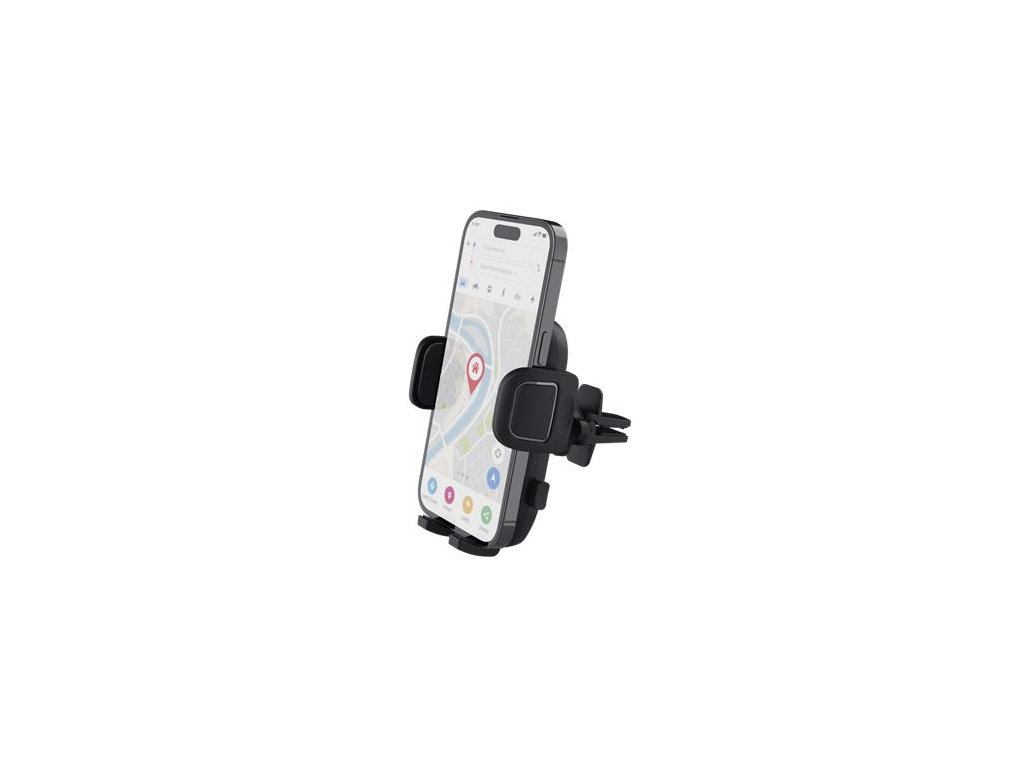 Držiak telefónu do auta, ktorý je možné uchytiť k ventilácii.- protišmyková rukoväť vďaka pogumovanej zadnej svorke