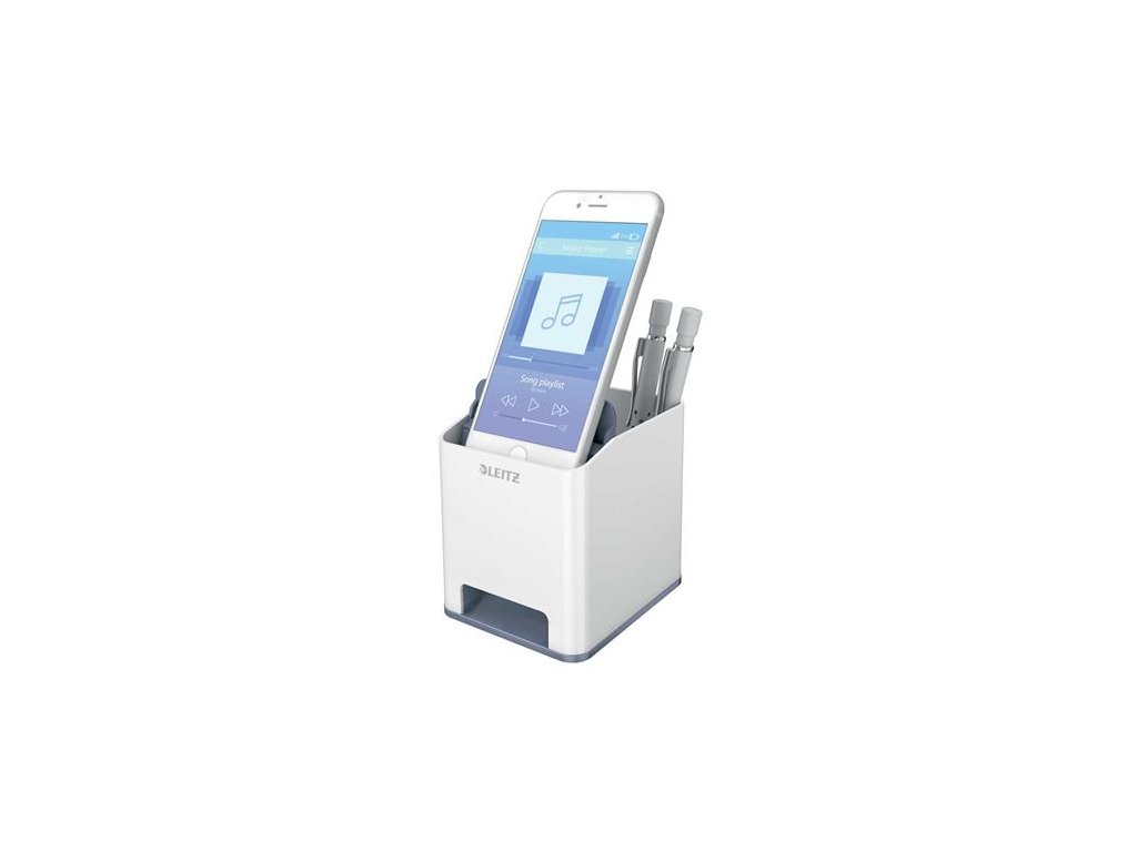 Leitz držiak na pásacie potreby vysokej kvality s lesklým povrchom dokonale sa hodí k ostatným Leitz WOW produktom vďaka modernému prevedeniu sa hodí do domácnosti aj do kancelárie držiak vhodný na písacie potreby, pravítka, nožnice a pod. priehradka na mobil (max. do rozmerov iPhone6) Vďaka unikátnej konštrukcii zosilní zvuk telefónu displej telefónu je dobre viditeľný rozmer: 90 x 100 x 101 mm Značka: LEITZ Výrobca: Esselte Kft. Adresa: 1139 Budapest, Lomb u. 37-39. A ép. II. 8., Hungary Web: https://www.accobrands.com/brands/ Email: hungarymarketing@acco.comDodatočné parametre