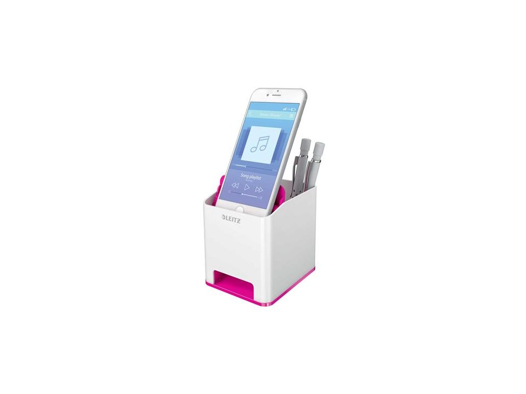 Leitz držiak na pásacie potreby vysokej kvality s lesklým povrchom dokonale sa hodí k ostatným Leitz WOW produktom vďaka modernému prevedeniu sa hodí do domácnosti aj do kancelárie držiak vhodný na písacie potreby, pravítka, nožnice a pod. priehradka na mobil (max. do rozmerov iPhone6) Vďaka unikátnej konštrukcii zosilní zvuk telefónu displej telefónu je dobre viditeľný rozmer: 90 x 100 x 101 mm Značka: LEITZ Výrobca: Esselte Kft. Adresa: 1139 Budapest, Lomb u. 37-39. A ép. II. 8., Hungary Web: https://www.accobrands.com/brands/ Email: hungarymarketing@acco.comDodatočné parametre