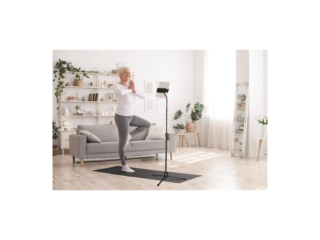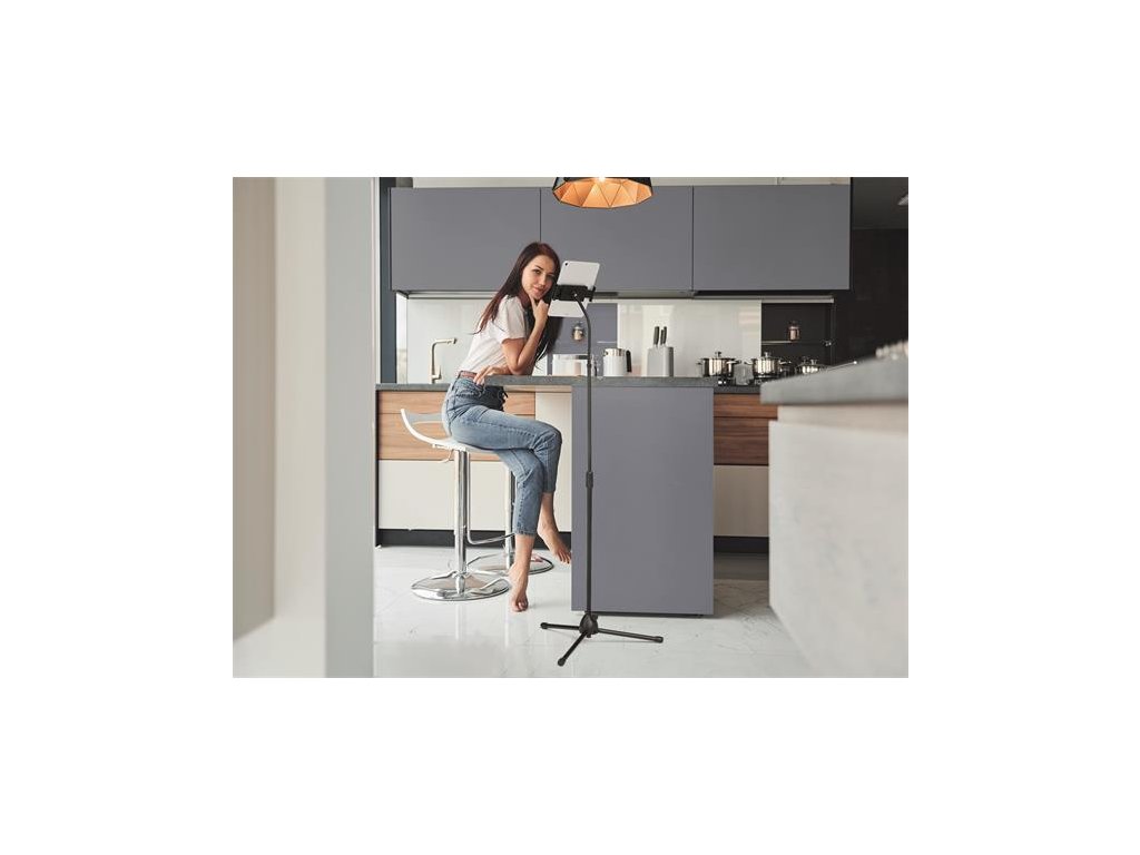 Podlahový stojan s držiakom na tablet a mobilný telefón, s flexibilným ramenom a guľovým kĺbom pre tablety a smartfóny do 13".