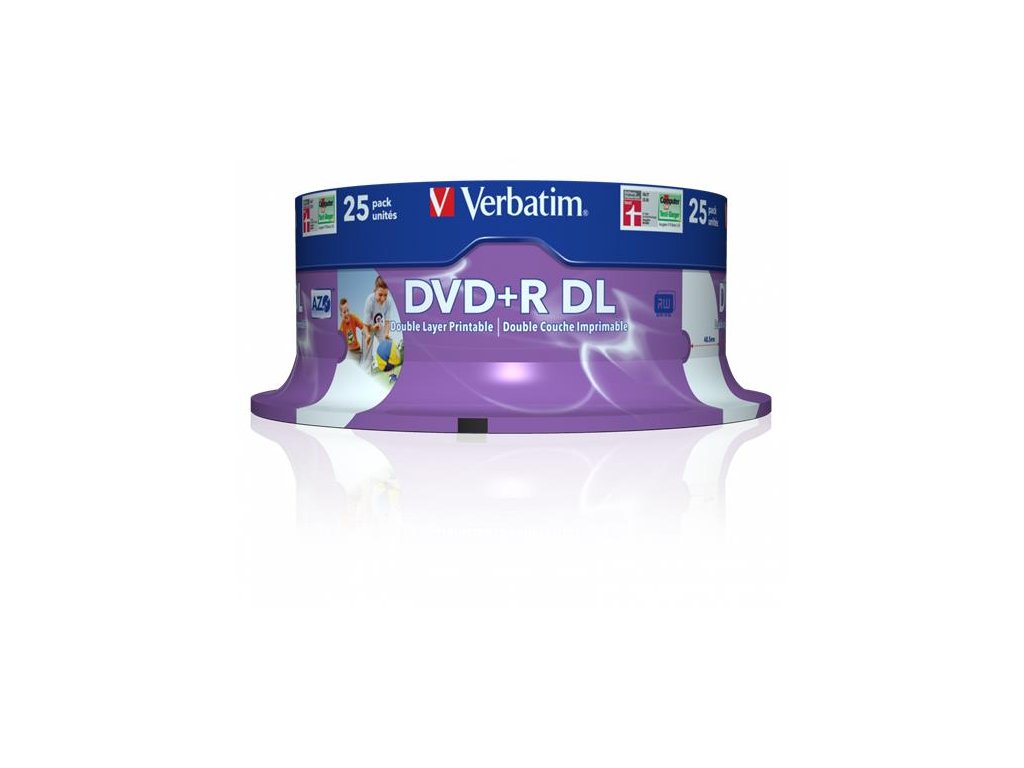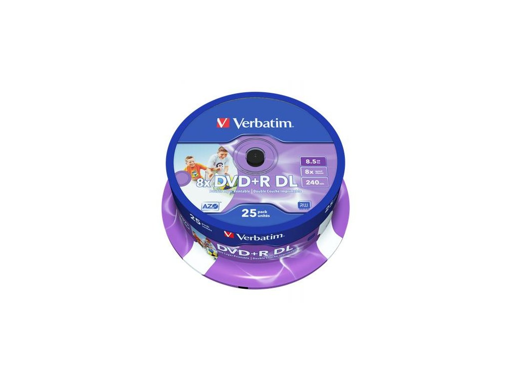 DVD+R disk, dvojvrstvový, potlačiteľný, no-ID, 8,5GB, 8x, 25 ks, cake box, VERBATIM "Double Layer"