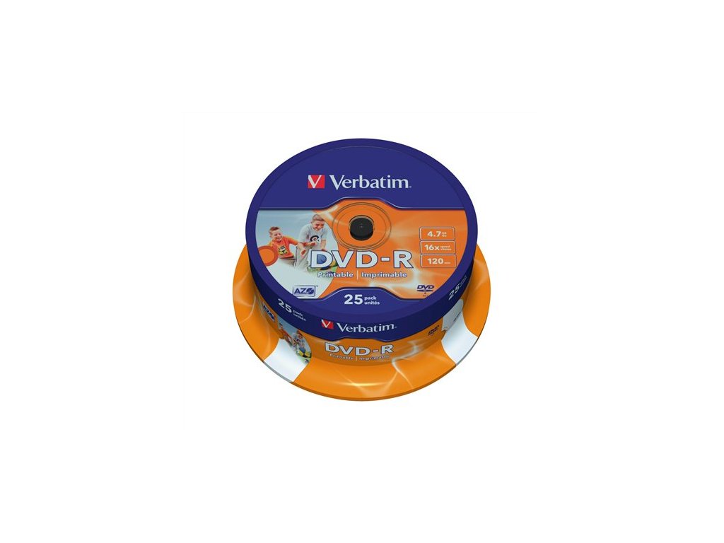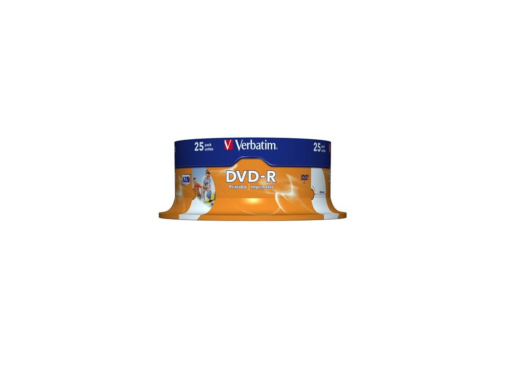 DVD-R disk, potlačiteľný, matný, ID, 4,7GB, 16x, 25 ks, cake box, VERBATIM