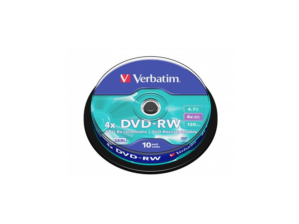 DVD-RW disk, prepisovateľný 4,7GB, 4x, 10 ks, cake box, VERBATIM