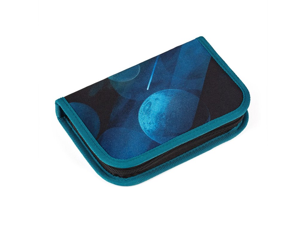 Jednokomorový školský peračník s dvoma chlopňami je vybavený 21 klasickými gumovými úchytmi na pastelky a fixky, troma širšími úchytmi na pravítka, kružidlo či nožnice, a dvoma väčšími úchytmi na gumu a strúhadlo.