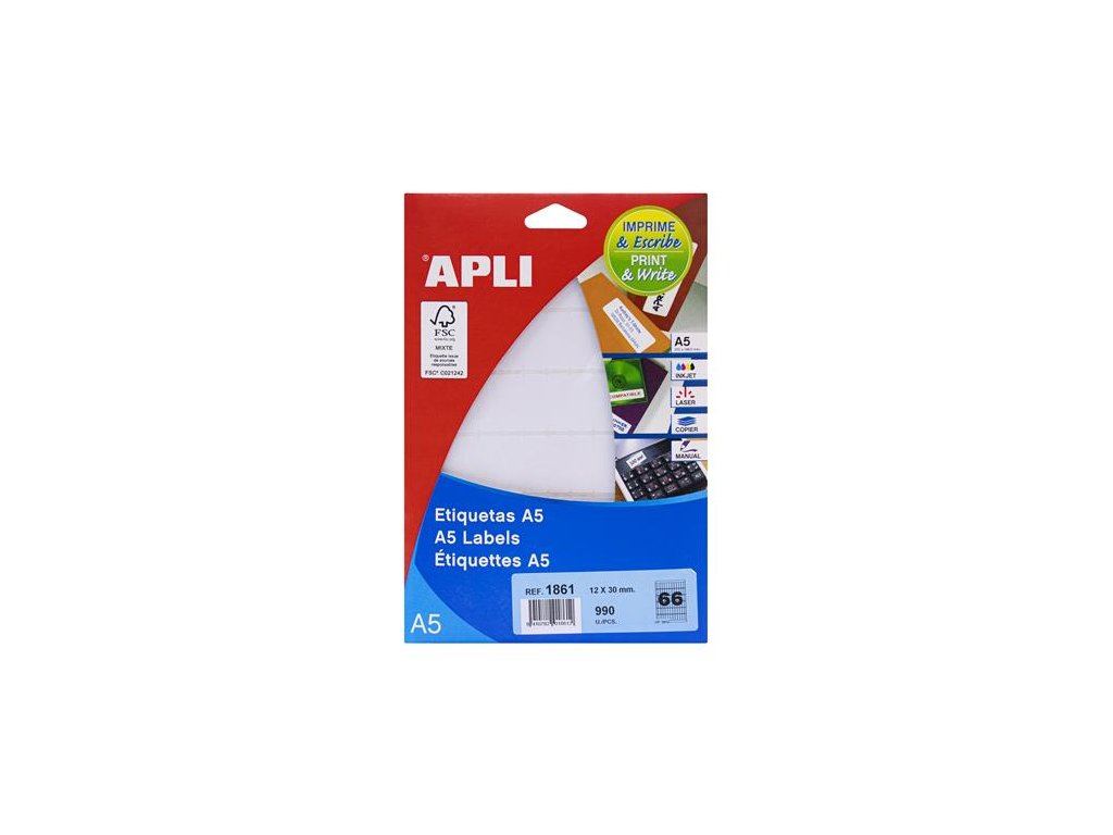 vhodné pre laserové, atramentové tlačiarne a kopírovacie stroje ručne popisovateľné list formátu A5 ekonomické riešenie v prípade používania v malom množstve 15 listov/bal bezplatne stiahnuteľný softver APLI Soft pre tlačenie etikiet: www.apli.comDodatočné parametre