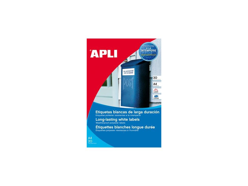 Etikety, 199,6 x 143,5 mm, polyester, odolné voči poveternostným podmienkam, zaoblené rohy, APLI, biele, 40 etikiet/bal
