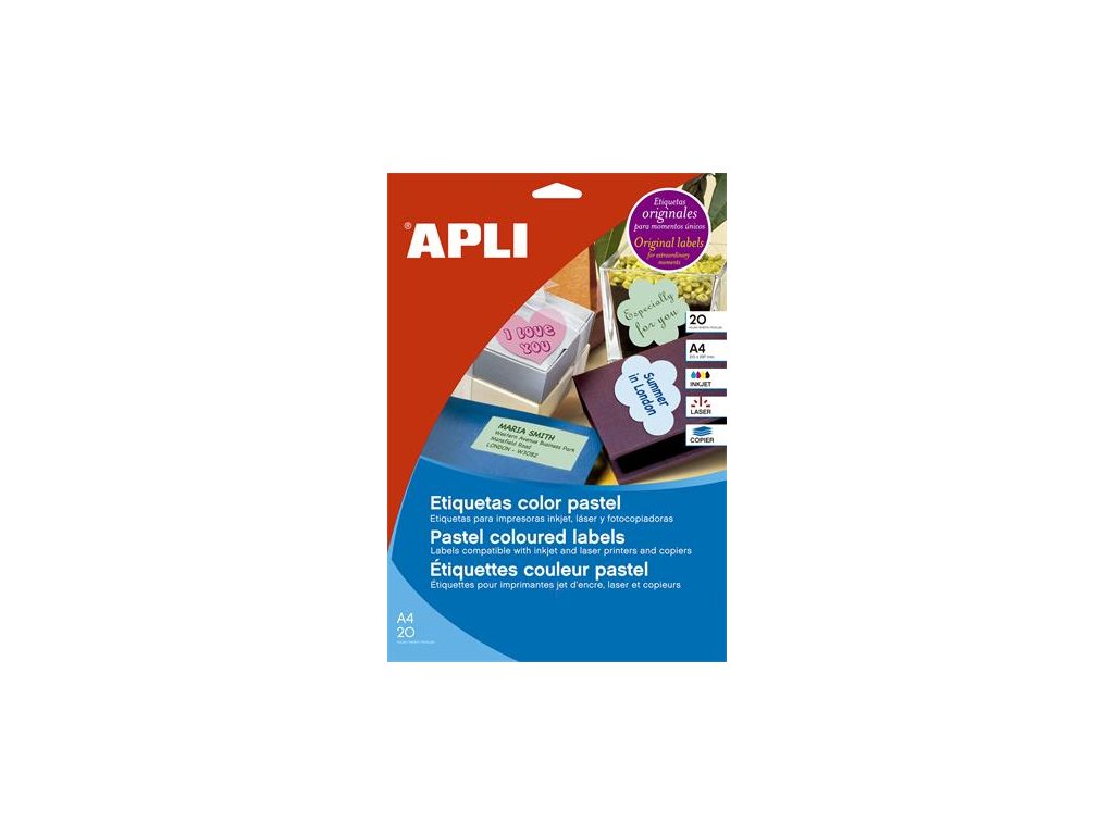 vhodné do laserových a atramentových tlačiarní a kopírovacích strojov jedinečná možnosť oštítkovania darčekov, napr. na fľaše, pohľadnice, pozvánky elegantné riešenie na rôzne príležitosti certifikované FSC, vyhovuje požiadavkám ekologickej výroby bezplatne stiahnuteľný softver APLI Soft na tvorbu etikiet: www.apli.comDodatočné parametre