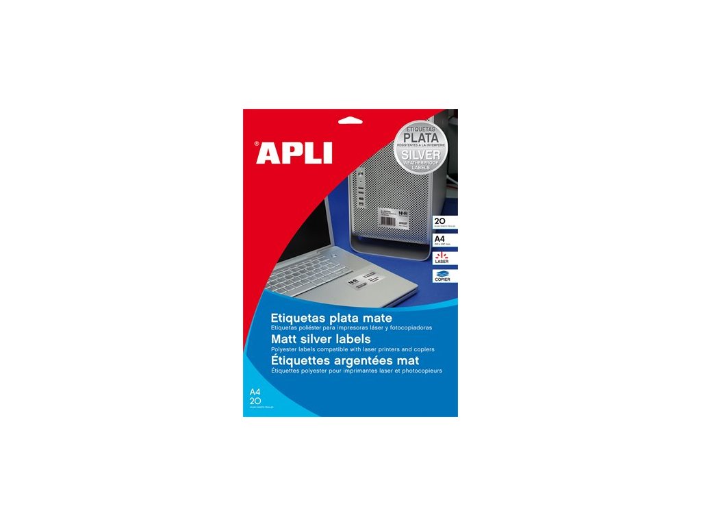 v matnej striebornej farbe vhodné pre laserové tlačiarne a kopírovacie zariadenia odolné voči poveternostným podmienkam, vodeodolné dajú sa použiť pri teplote: -20°C a +100°C vhodné na priemyselné použitie - na stavby, do laboratorií bezplatne stiahnuteľný softver APLI Soft na tvorbu etikiet: www.apli.comDodatočné parametre