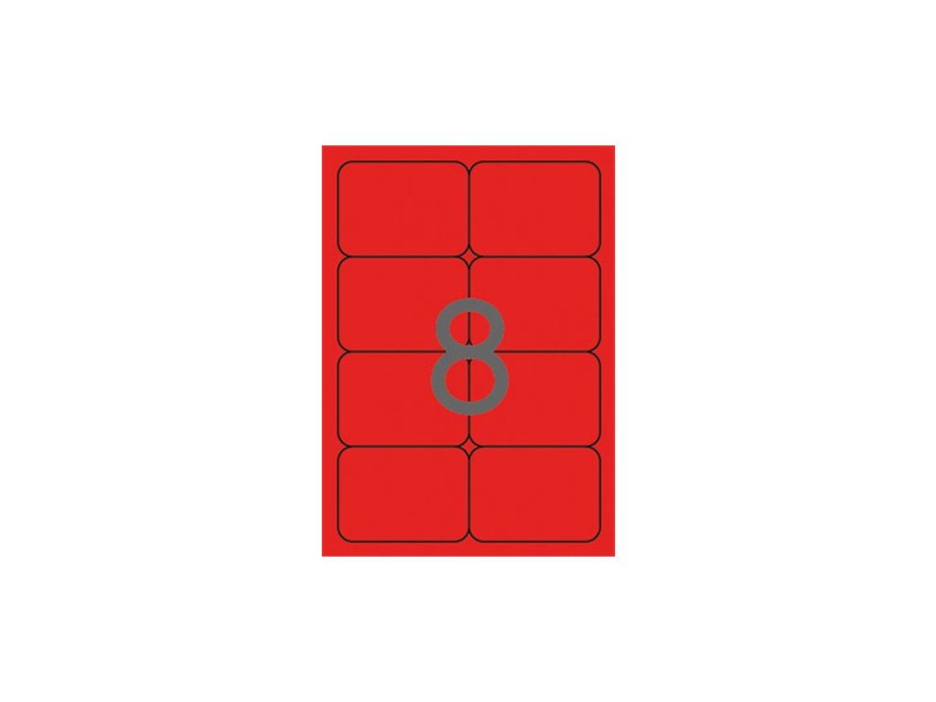 Etikety, 99,1x67,7 mm, farebné, zaoblené rohy, APLI, neónové červené, 160 etikiet/bal