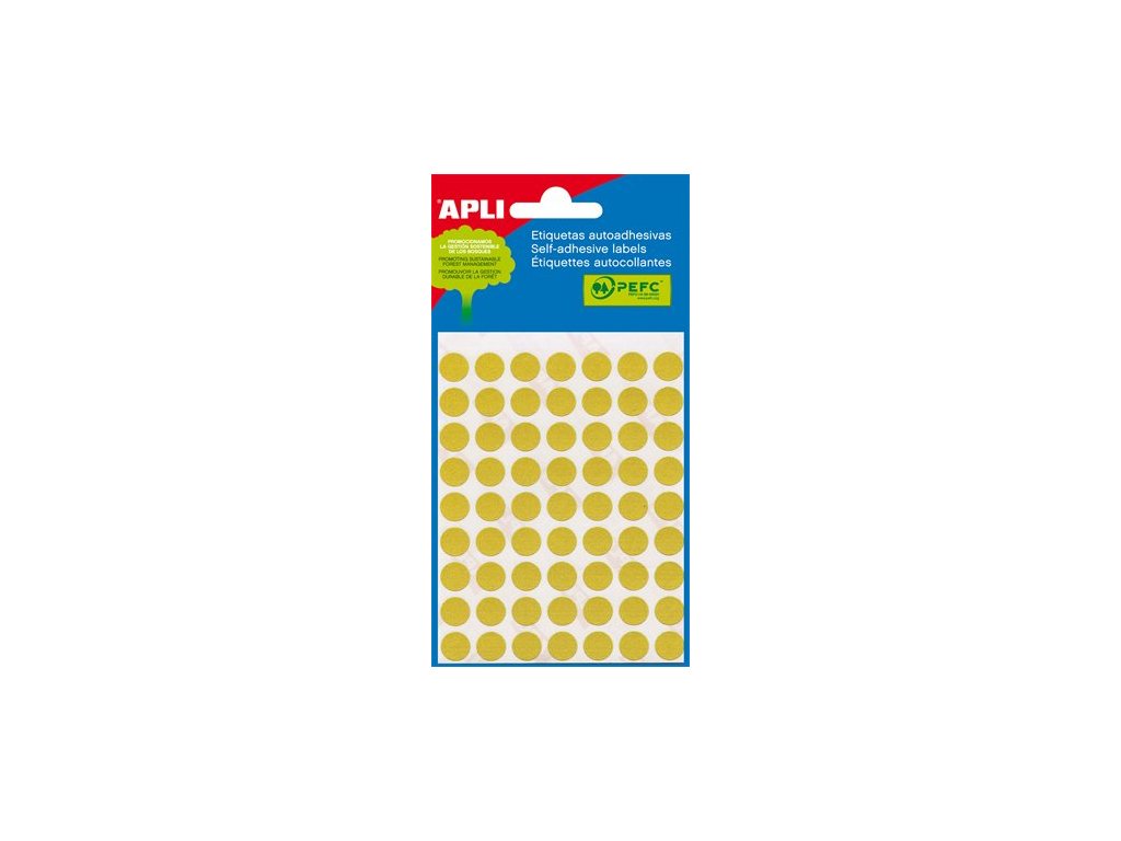 Etikety, okrúhle, priemer: 13 mm, ručne popisovateľné, farebné, APLI, žlté, 175 etikiet/bal