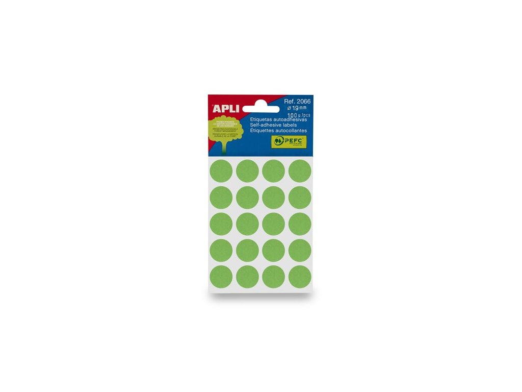 Etikety, okrúhle, priemer:19 mm, ručne popisovateľné, farebné, APLI, zelené, 100 etikiet/bal