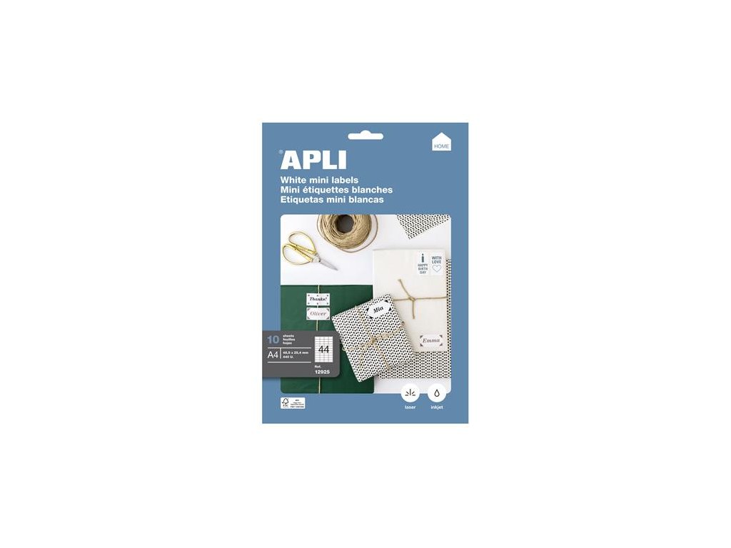 univerzálne biele etikety určené pre laserovú, atramentovú tlač a do kopírovacích strojov s certifikátom FSC zadarmo stiahnuteľný softver APLI Soft na tvorbu etikiet: www.apli.comDodatočné parametre