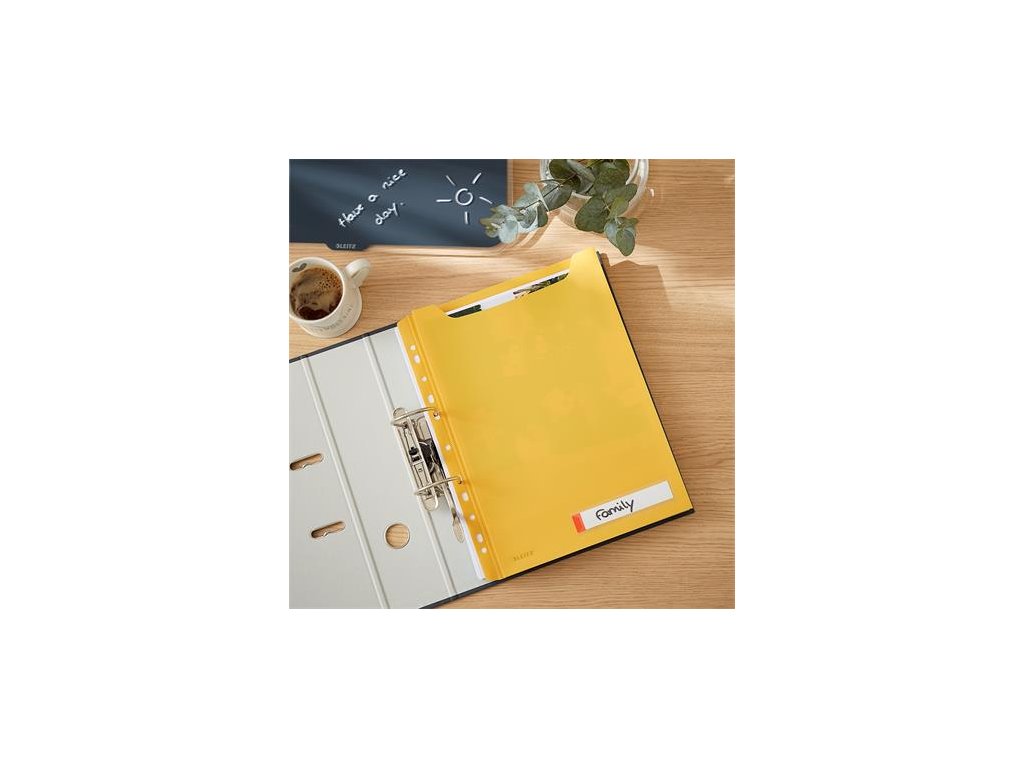 Produkty Leitz Cosy prinášajú vášmu pracovnému prostrediu štýl vďaka minimalistickému dizajnu, matnému povrchu a teplej farebnej škále Euroobaly sú vyrobené z nepriehľadného, recyklovateľného PP materiálu s hrúbkou 0,20 mm pre vysokú nosnosť a dlhodobé použitie Ideálne na organizáciu a prepravu dokumentov obsahujúce citlivé dáta (do veľkosti A4) Štítok na prednej strane pre jasnú identifikáciu Vhodný do akéhokoľvek zakladača Veľký výrez hore pre jednoduché vkladanie papiera a nahliadnutie do dokumentu Kapacita: 150 listov (80 g / m2) Farba: teplá žltá Značka: LEITZ Výrobca: Esselte Kft. Adresa: 1139 Budapest, Lomb u. 37-39. A ép. II. 8., Hungary Web: https://www.accobrands.com/brands/ Email: hungarymarketing@acco.comDodatočné parametre