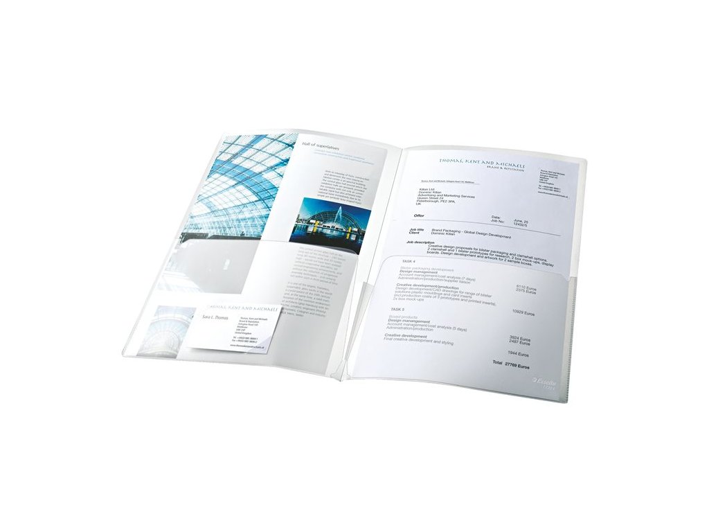 Dvojité dosky pre profesionálnu prezentáciu dokumentov či projektov, vhodné pre formát A4 na každej strane príp. je možné vložiť i dokument formátu A3, embosovaná PP fólia hrúbky 0,18 mm Značka: ESSELTE Výrobca: Esselte Kft. Adresa: 1139 Budapest, Lomb u. 37-39. A ép. II. 8., Hungary Web: https://www.accobrands.com/brands/ Email: hungarymarketing@acco.comDodatočné parametre