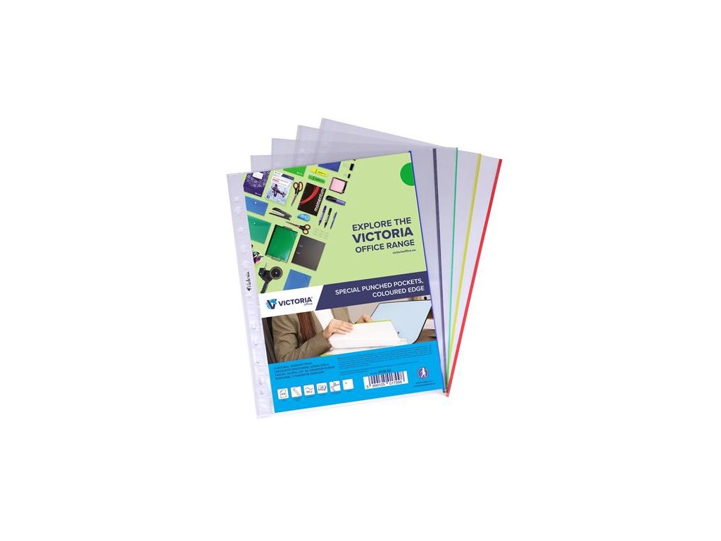 Euroobal, s farebným okrajom, A4, 50 mikr., číry, VICTORIA OFFICE, mix farieb