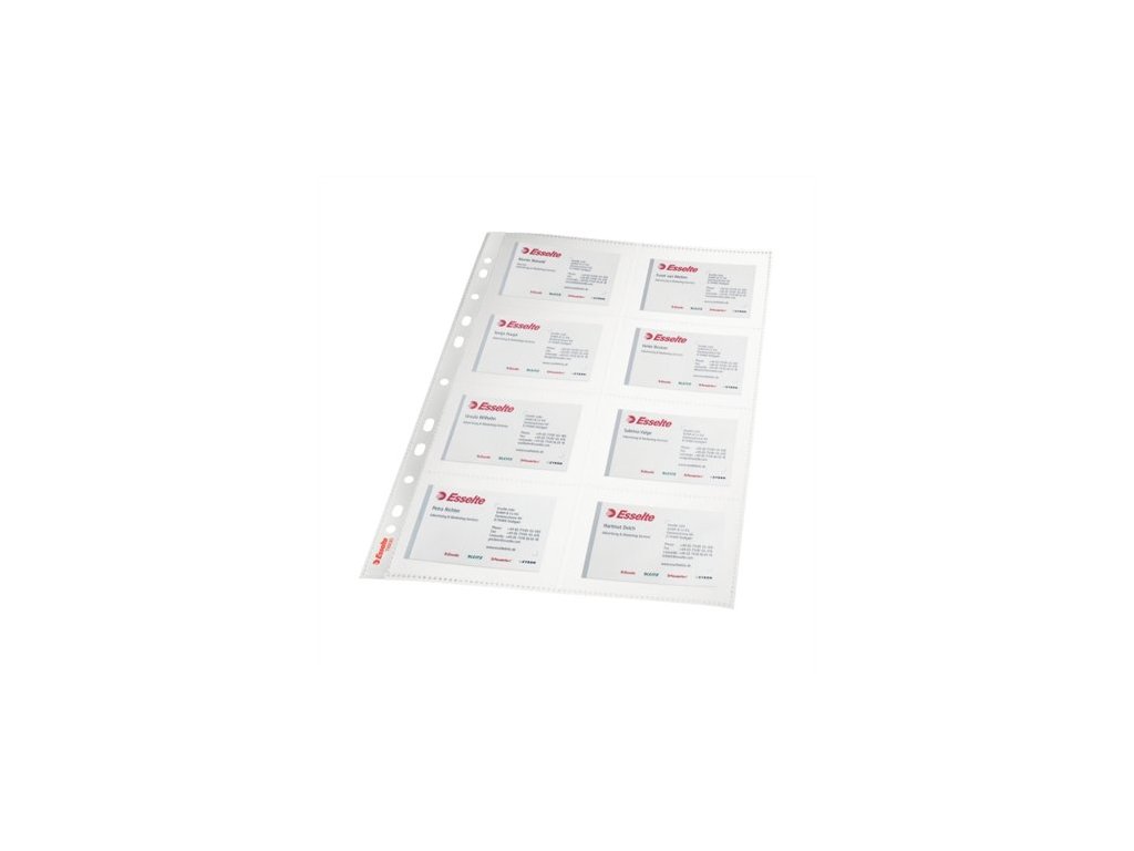 Závesné plastové obaly na 8 vizitiek s možnosť archivácie v pákových nebo krúžkových zoraďovačoch, vizitky je možné umiestniť z oboch strán a zvýšiť tak kapacitu na 16 vizitiek, hladká PP fólia 0,105 mm, balenie: 10 ks Značka: ESSELTE Výrobca: Esselte Kft. Adresa: 1139 Budapest, Lomb u. 37-39. A ép. II. 8., Hungary Web: https://www.accobrands.com/brands/ Email: hungarymarketing@acco.comDodatočné parametre