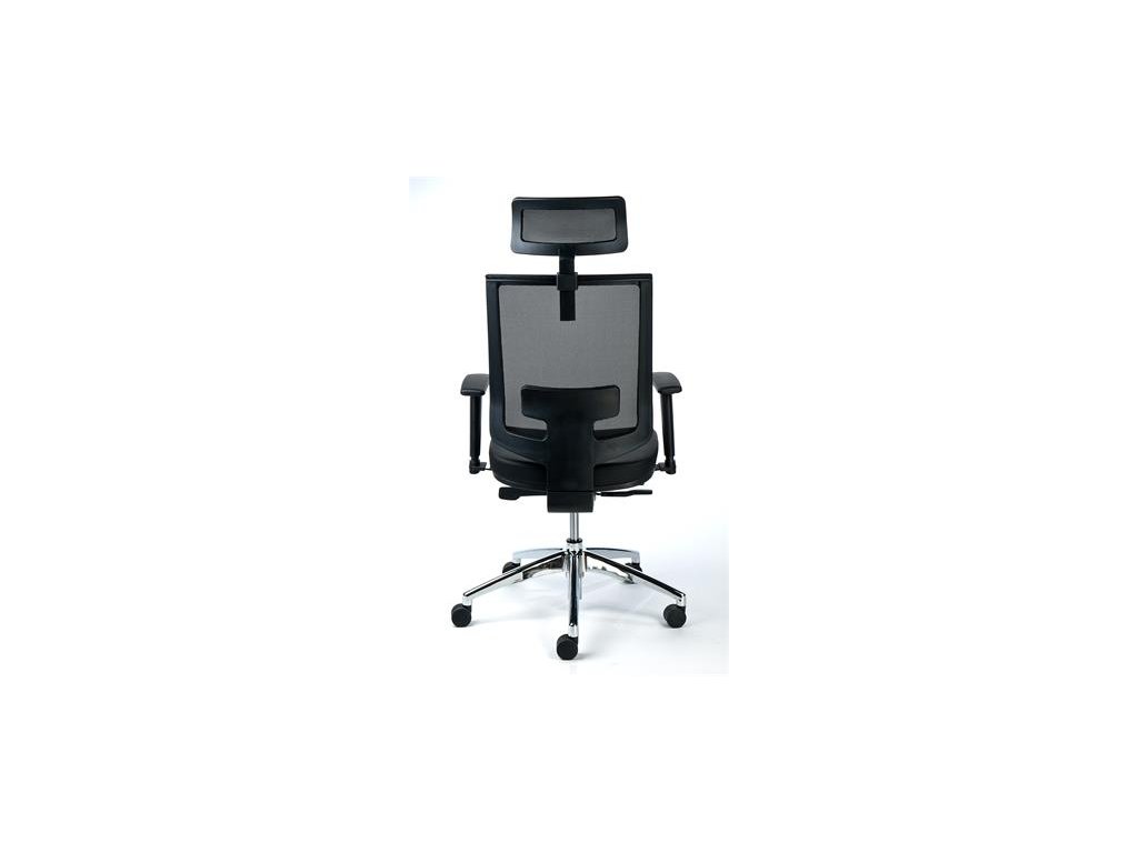 kancelárska stolička s vysokým operadlom komfortné vyhotovenie, ergonomicky tvarované operadlo plynové nastavenie výšky nastaviteľná hĺbka sedadla jedným pohybom nastaviteľná výška operadla hliníkový podstavec v štyroch bodoch nastaviteľná synchrónna mechanika sa prispôsobuje hmotnosti čalúnenie: operadlo: napnutý sieťový materiál sedadlo: mäkká bonded koža s nastaviteľnými opierkami rúk max. nosnosť: 130 kgDodatočné parametre