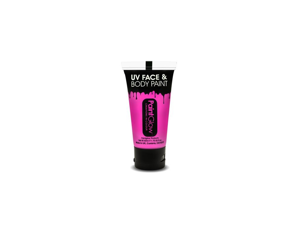 PaintGlow™ UV aktívne, na UV svetlo reagujúce farby na telo a tvár, ktoré je možné aplikovať kdekoľvek na povrch tela.