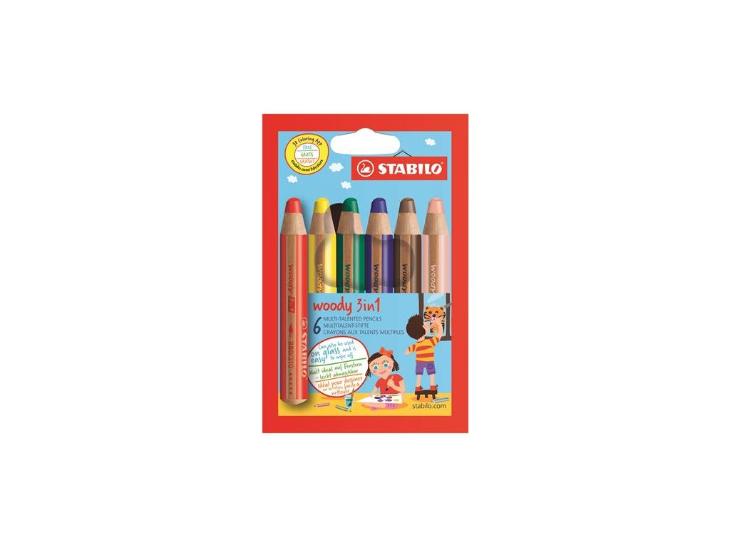 Farebná ceruzka, hrubá, STABILO "Woody", 6 rôznych farieb