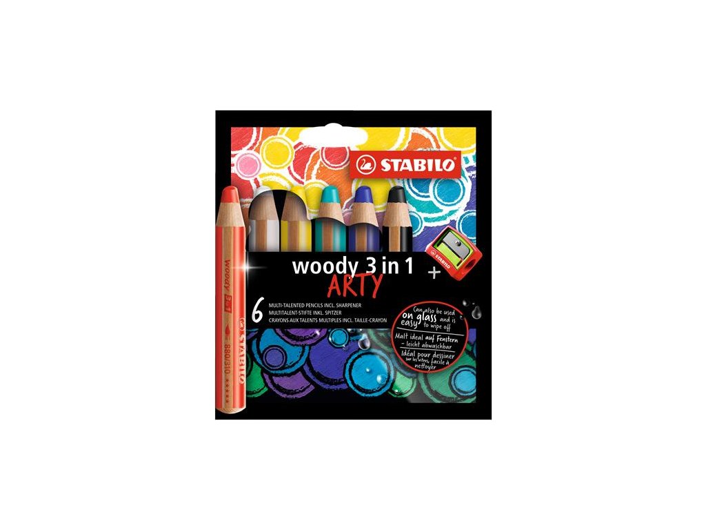 Farebná ceruzka, hrubá, STABILO "Woody ARTY 3 in 1", 6 rôznych farieb