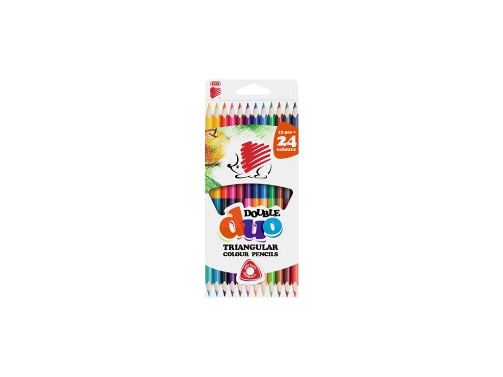 Farebné ceruzky, s 2 hrotmi, trojhranný tvar, ICO "Ježko, 24 rôznych farieb
