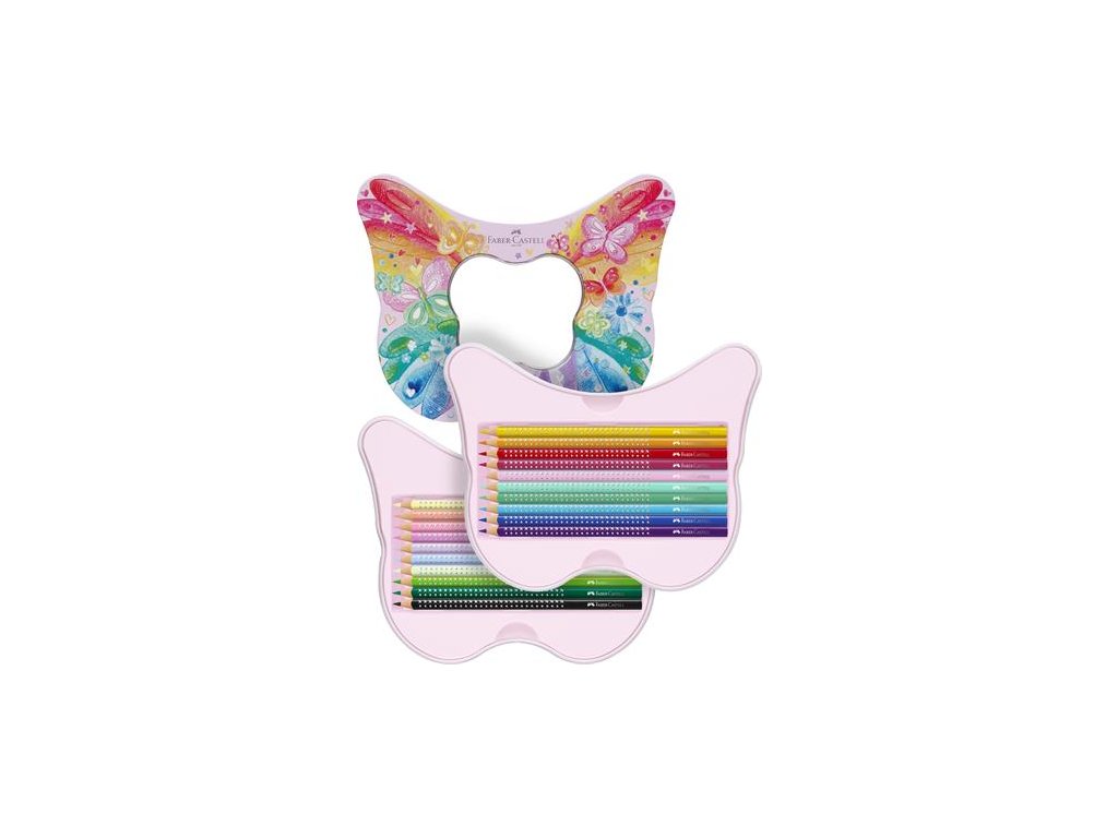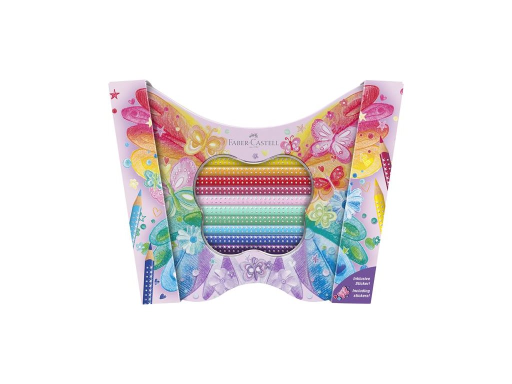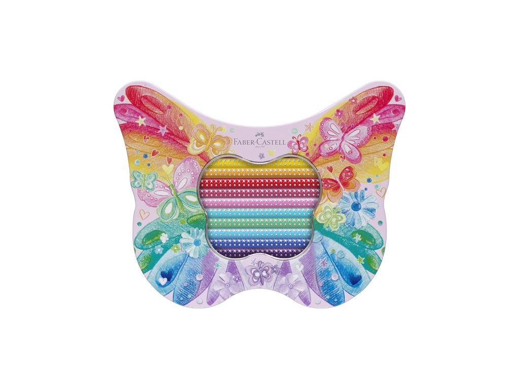 Farebné ceruzky, sada, kovová krabica, FABER-CASTELL "Sparkle", 20 rôznych farieb, motýľ