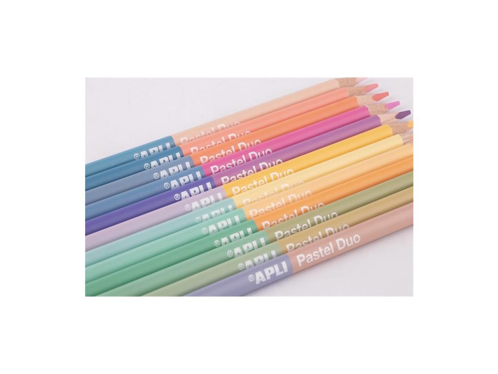 Farebné ceruzky, sada, obojstranné, trojhranné, APLI "Pastel Duo", 24 rôznych pastelových farieb
