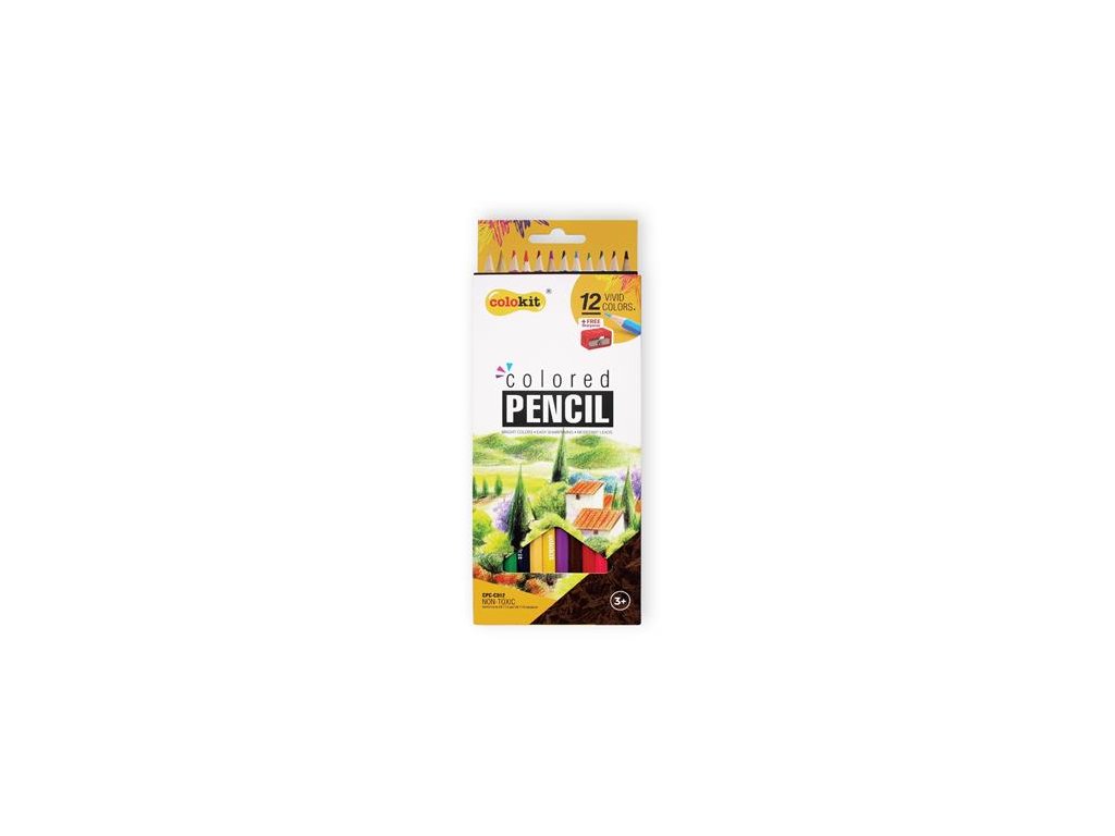 Farebné ceruzky, sada, šesťhranné, so strúhadlom, COLOKIT, 12 rôznych farieb