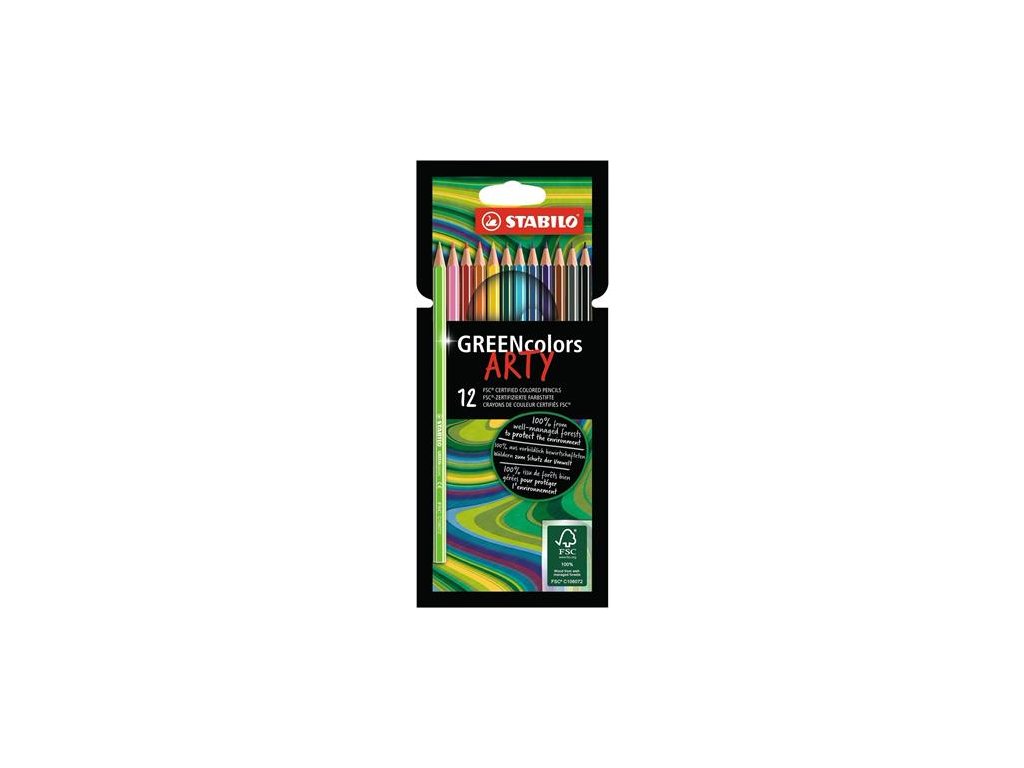 Farebné ceruzky, sada, šesťhranný tvar, STABILO "GreenColors ARTY", 12 rôznych farieb
