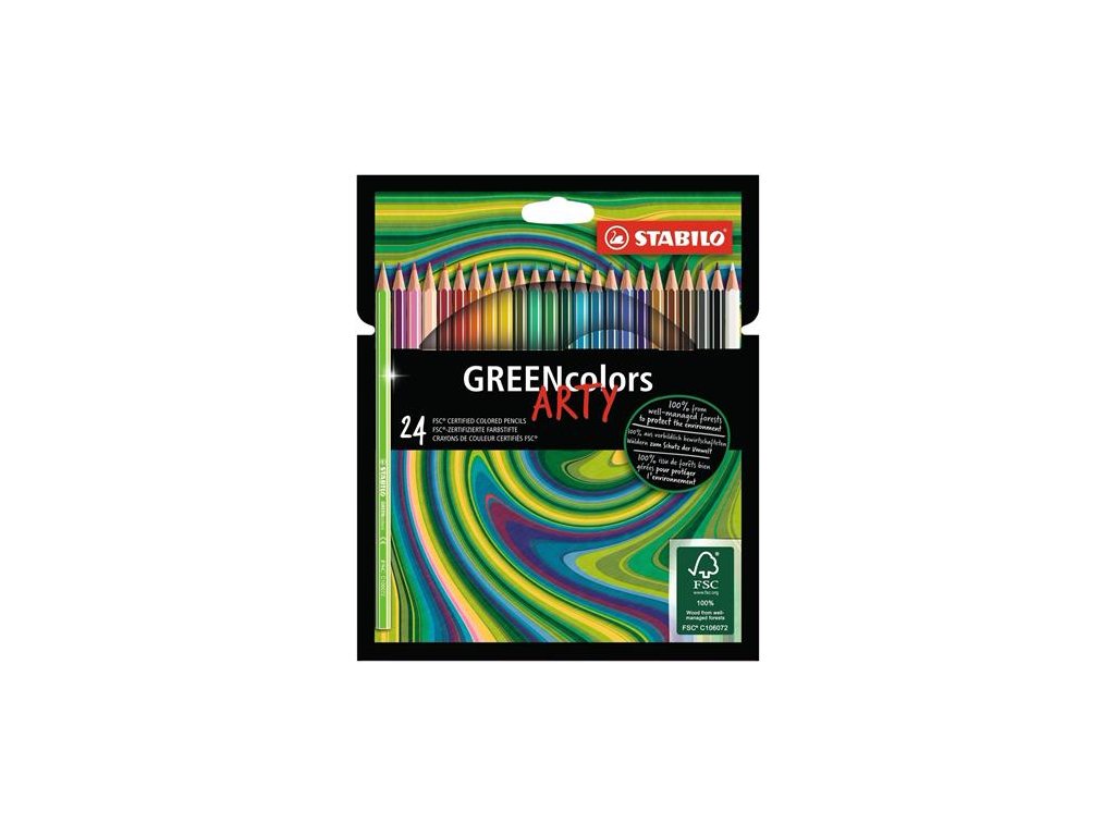 Farebné ceruzky, sada, šesťhranný tvar, STABILO "GreenColors ARTY", 24 rôznych farieb