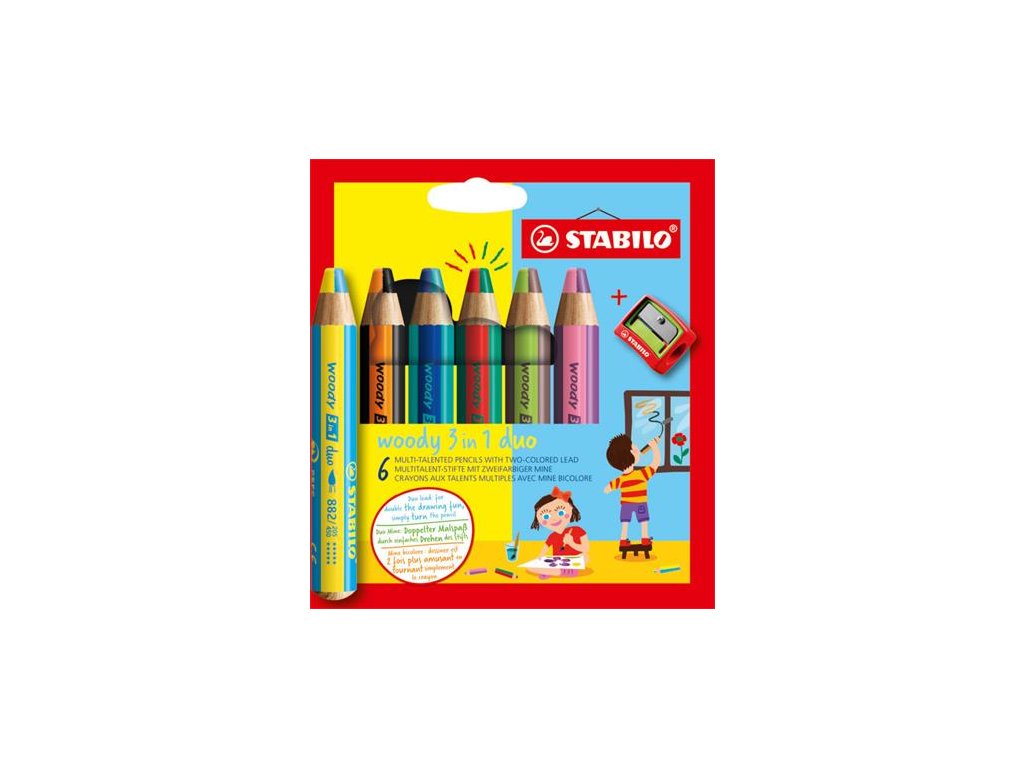Farebné ceruzky, sada, STABILO "Woody 3 in 1 duo", 6 obojstranných rôznych farieb