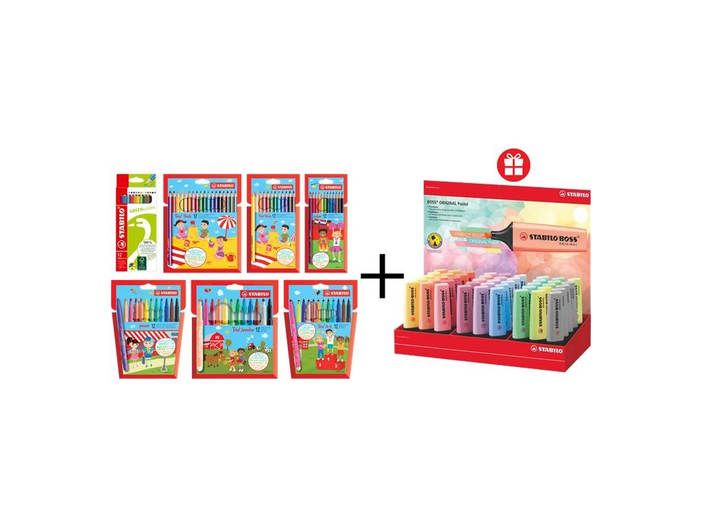 Darček: TST70454 Zvýrazňovače, displej, 2-5 mm, STABILO "BOSS Pastel", rôzne pastelové farby