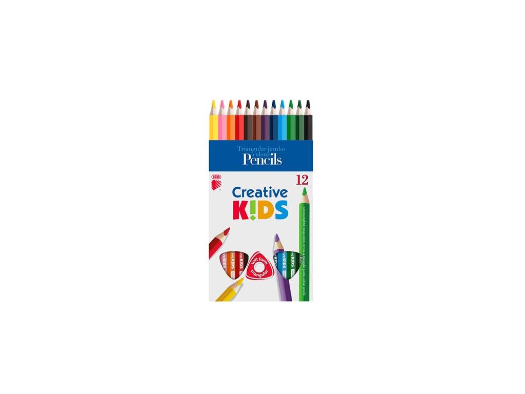 Farebné ceruzky, sada, trojhranné, hrubé, ICO "Creative kids", 12 rôznych farieb