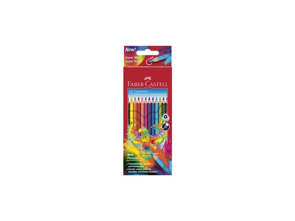 Farebné ceruzky, sada, trojhranný tvar, FABER-CASTELL "Papagáj", 12 rôznych farieb
