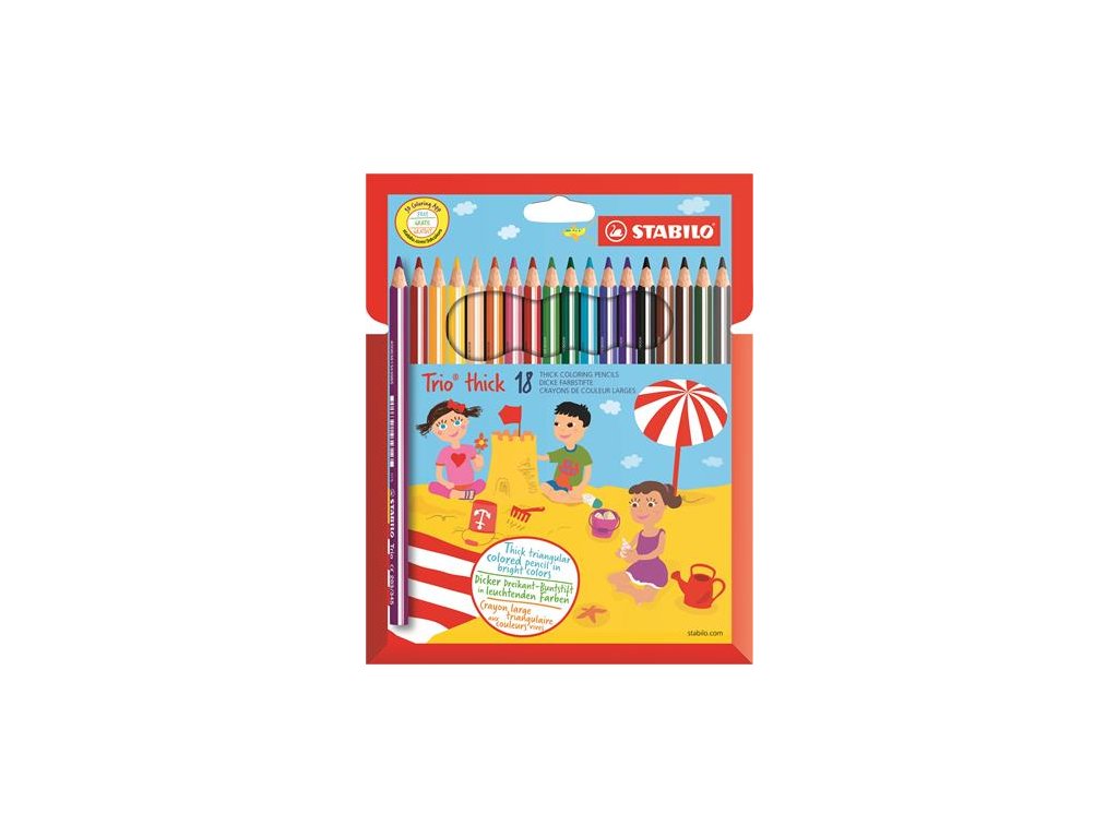 Farebné ceruzky, trojhranné, hrubé, STABILO "Trio thick", 18 rôznych farieb